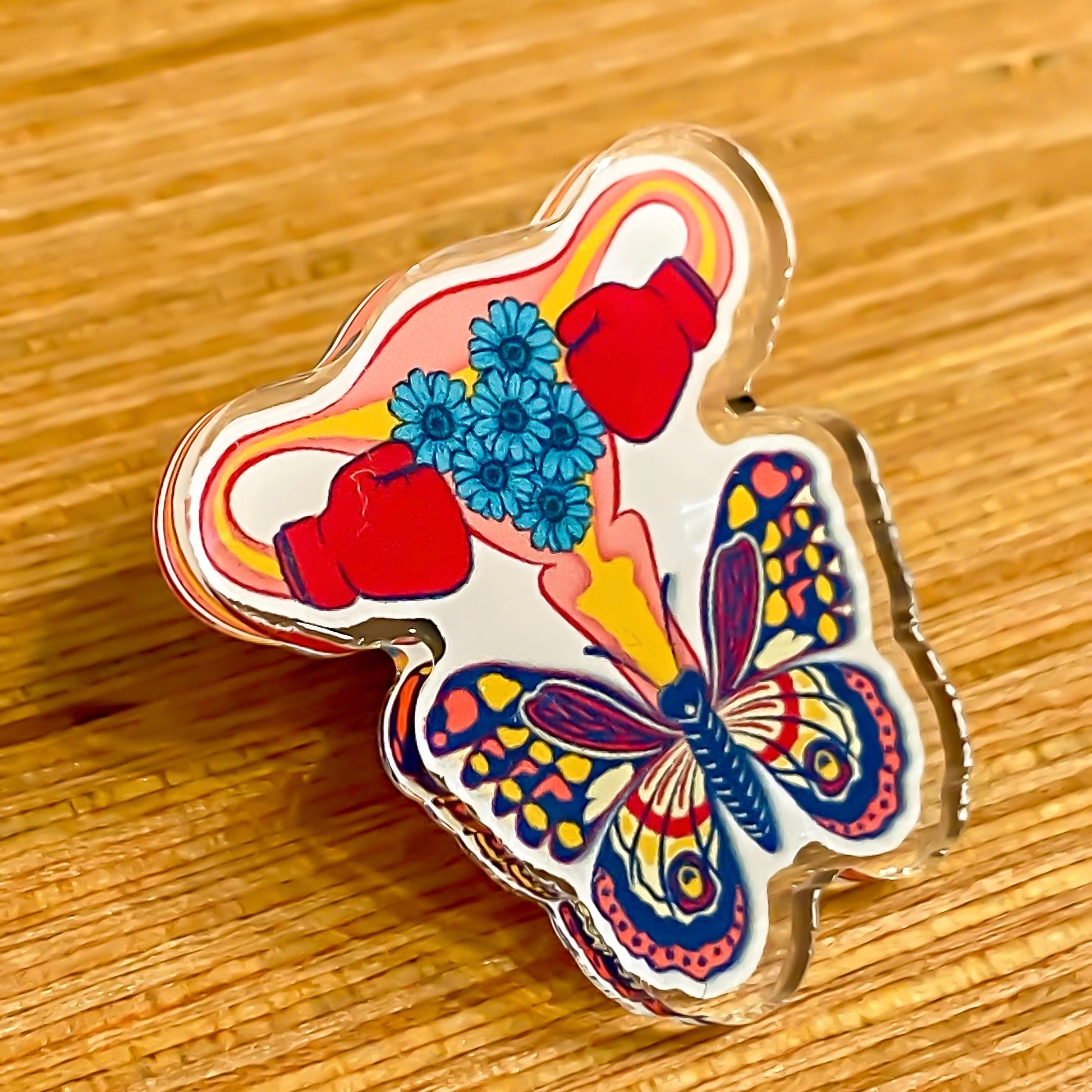 Acrylic pin with exclusive design.