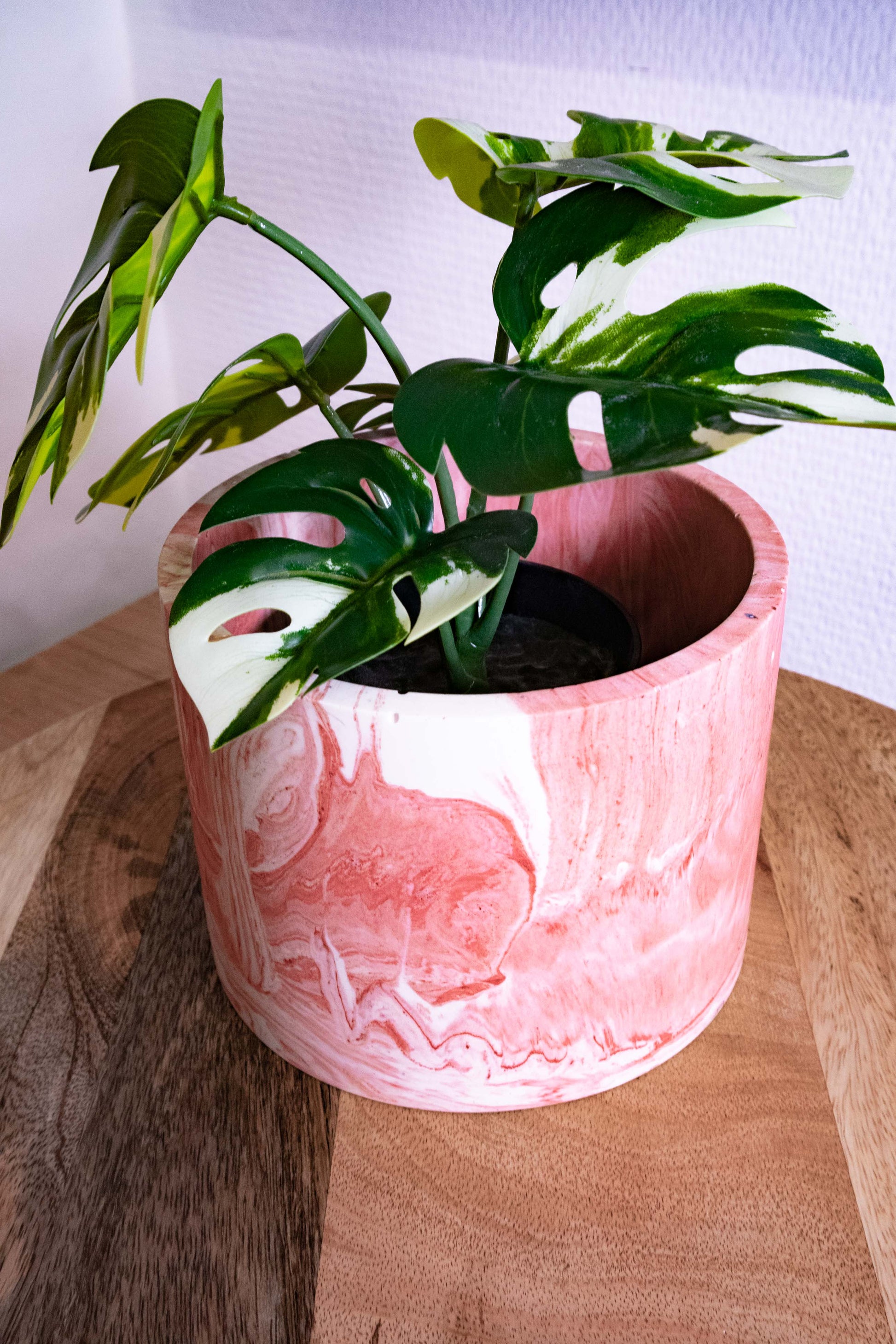 Pot Plant grd - Jesmonite - White and rose marbled